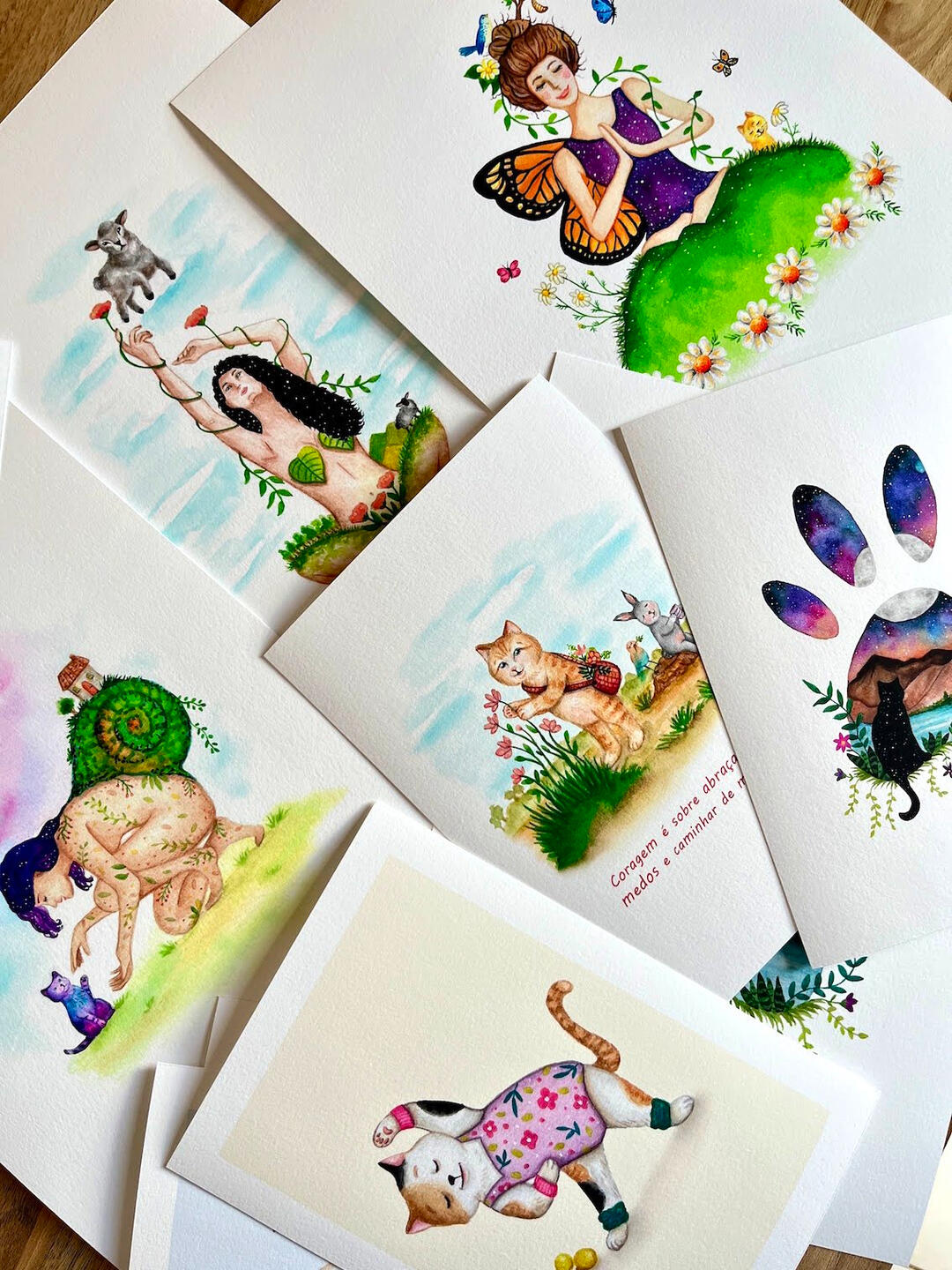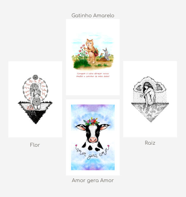 Os Prints são reproduções de alta qualidade das minhas ilustrações originais. São produzidos em tiragens exclusivas, impressos com pigmentos minerais em papéis profissionais e sob encomenda. A impressão é feita por uma empresa especializada, garantindo fidelidade no tom das cores e na textura do papel. É uma forma mais acessível de adquirir uma arte minha, mantendo a essência e a qualidade de um trabalho autoral.